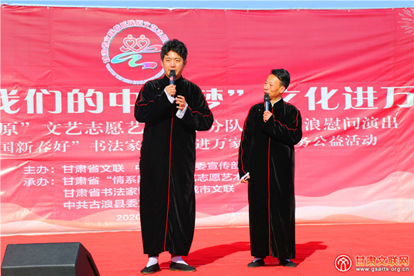 1月11日,2020年“我们的中国梦”文化进万家——甘肃省“情系陇原”文艺志愿艺术团小分队走进古浪送欢乐下基层慰问演出暨“同心同书·祖国新春好”书法家送万福进万家服务公益活动在黄花滩绿洲小区文化广场举行。