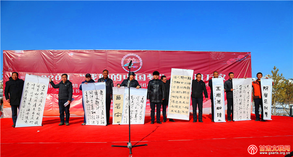 省文联副主席、省书协主席林涛出席活动并讲话,同时代表省文联、省书协为时代楷模——古浪县八步沙林场“六老汉”三代人治沙造林先进群体赠送全省名家书画作品,还现场书写春联福字为移民区广大干部群众送上新春的祝福。