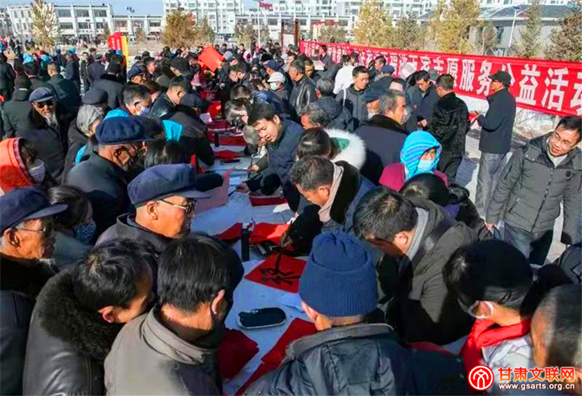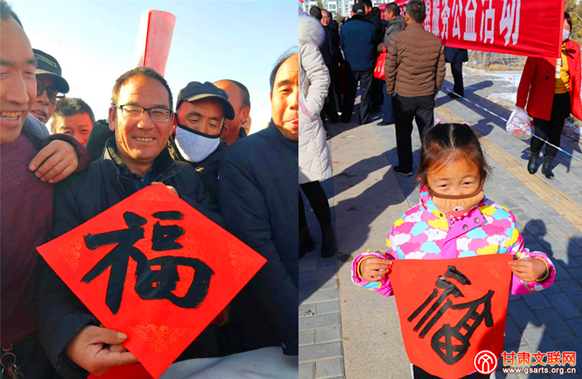 慰问演出现场,省文联、省书协以及武威市文联、市书协组织的书法家现场写春联、写福字、送万福,营造了浓浓的节日氛围。